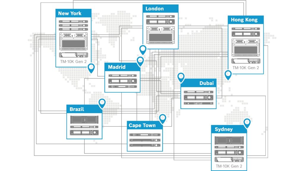 中继允许网络矩阵无缝地连接在一起。TM-10K Gen 2 trunkmaster支持2至255个对讲系统的配置,具有10,000条可分配的中继线。